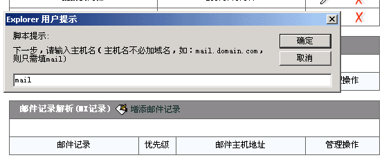 如果您需要使用您的域名来访问企业邮局,那么您应该作MX记录解析,也就是邮件交换记录解析。 现以域名hzhost.com为例,要使mail.hzhost.com能够正常收发信,应该执行两个操作,一个是把mail.hzhost.com解析到企业邮局所在服务器的IP地址上(假设为218.5.74.39),另一个则是增添邮件交换记录。 1>首先请进入域名管理。(登录会员->英文域名管理->在列表中找到hzhost.com并点击"域名解析") 2>我们首先来解析mail.hzhost.com到IP:218.5.74.39。 点击"增添主机记录",然后在弹出的框内输入"mail",注意,不能输入"mail.hzhost.com"。如下图所示: 3>按"确定",然后输入IP地址:218.5.74.39,如下图所示: 4>再按"确定",该解析就完成了,该解析实时生效,如下图所示: 5>接下来需要添加邮件交换记录,若没有添加邮件交换记录,邮局是不能收到信的。点击"增添邮件记录",主机名请保持为空表示hzhost.com本身,如下图所示: ![]() 6>点击确定后又出现MX级别输入框,请输入10(10是最高级别),然后按确定,如下图所示: 7>按确定后,请输入主机名"mail",表示mail.hzhost.com.按确定就完成了所有操作。 ![]() 这样,邮件交换记录就做好了,如下图所示,您就可以用mail.hzhost.com来访问企业邮局了。 |