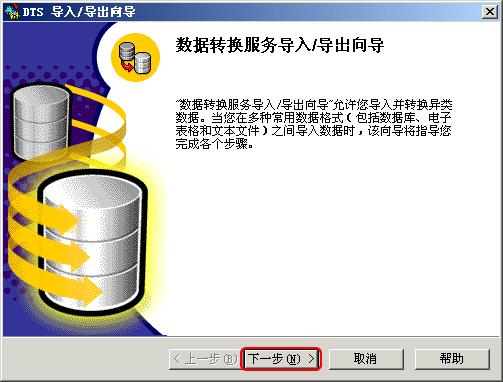 2.进入DTS导入/导出向导,点击“下一步”按钮继续