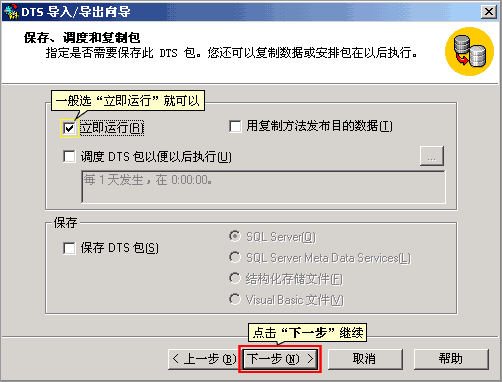 7.设定调度方式,一般选“立即运行”就可以,然后点“下一步”继续
