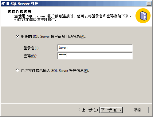 | 首先 您的电脑必须装有SQL2000,如果没有安装请先去安装好再进行以下操作,另外如果您购买的数据库是SQL2005,那么您必须先在本地安装SQL2005!如果您不确定您所够数据库的版本,请咨询技术支持! 1、打开你的本地Mssql企业管理器,展开控制台根目录、Microsoft SQL Server、SQL Server组。默认安装好的Mssql组中只有一个Local(Windows NT)。注意,在Win 2000中显示的是本地计算机名。 ![]() 2、鼠标右键SQL Server组,选择新建SQL Server注册命令,弹出注册向导。 ![]() 3、在添加可用服务器对话框中,左边可用服务器输入服务器IP地址或者服务器计算机名称,这里输入您的数据库服务器的IP地址(以下218.90.57.117仅作演示,您可以登陆您的数据库管理面板查看属于您自己的服务器IP地址)。并点击添加按钮,将你选择的可用服务器添加到右边文本框中。 ![]() 4、在选择身份证模式对话框中,共有两个选项。选择“系统管理员给我分配的SQL Server登录信息(SQL Server身份验证)”选项。 ![]() 5、选择连接选项中,输入登录用户名与密码。 ![]() 6、选择SQL Server组对话话中,可以将当前注册的SQL Server添加到默认的组中,或者新建一个顶层的新组。 ![]() 7、注册的SQL Server信息已设置完成,点击完成按钮后,让Mssql去自动测试连接远程服务器了。 8、连接成功,弹出如下图所示信息框。 ![]() 并在默认的SQL Server组中自动添加了一个未登录的服务器IP或者名称,双击这个IP,就会登录你的远程服务器Mssql了。 ![]() 你可以通过本地的Mssql远程登录到服务器,并且进行相关的数据库维护了。当然,远程操作时,由于网速的因素,所有的操作都会很迟缓,这属于正常现象。另外,登录后的所有操作都受到服务器开设登录名的权限制约。 |